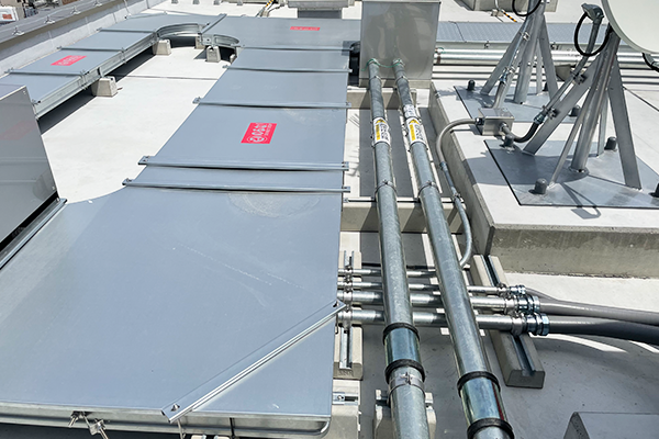 受変電設備工事とは、電力会社から供給された高圧の電力を施設で使えるように低圧の電力へ変換させる工事です。マンションやビルの敷地内にキュービクルと呼ばれる箱型の装置の交換なども行います。